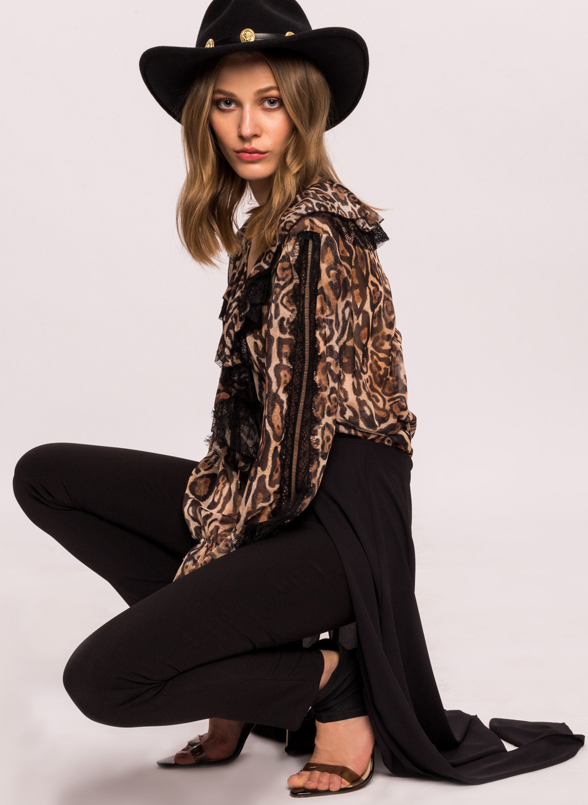 The model wears 36 size, model dimensions: 180 cm tall, 89 cm bust, 60 cm waist, 89 cm hips