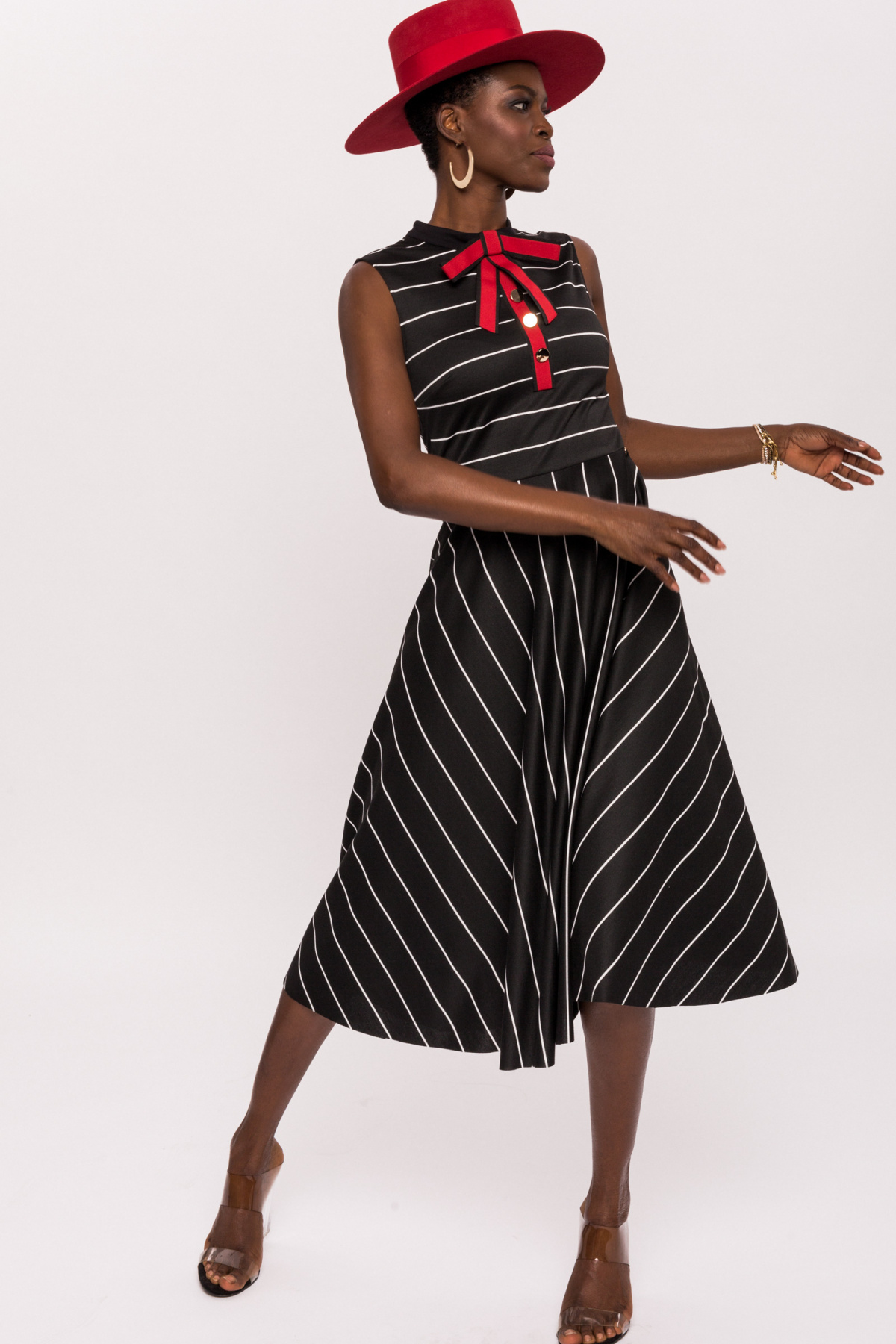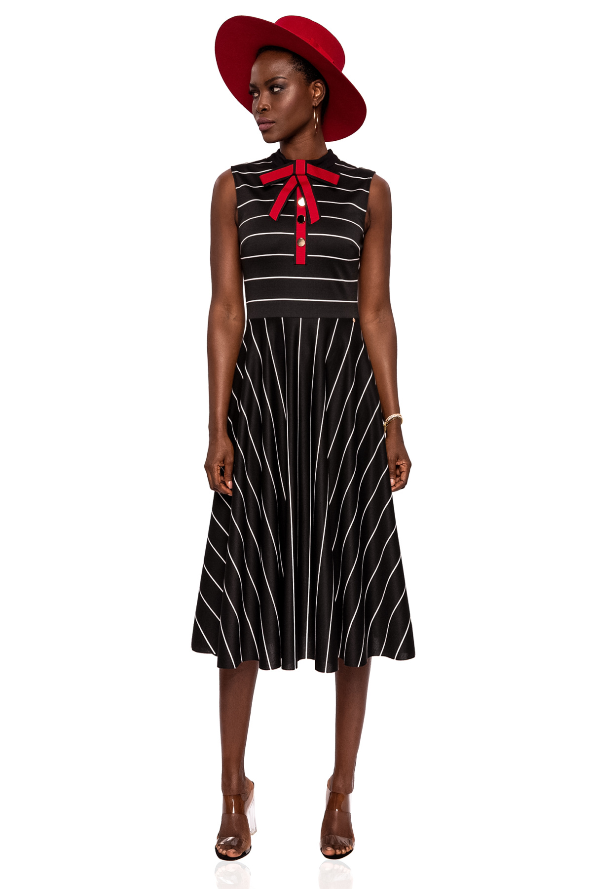Flared dress with bow neckline