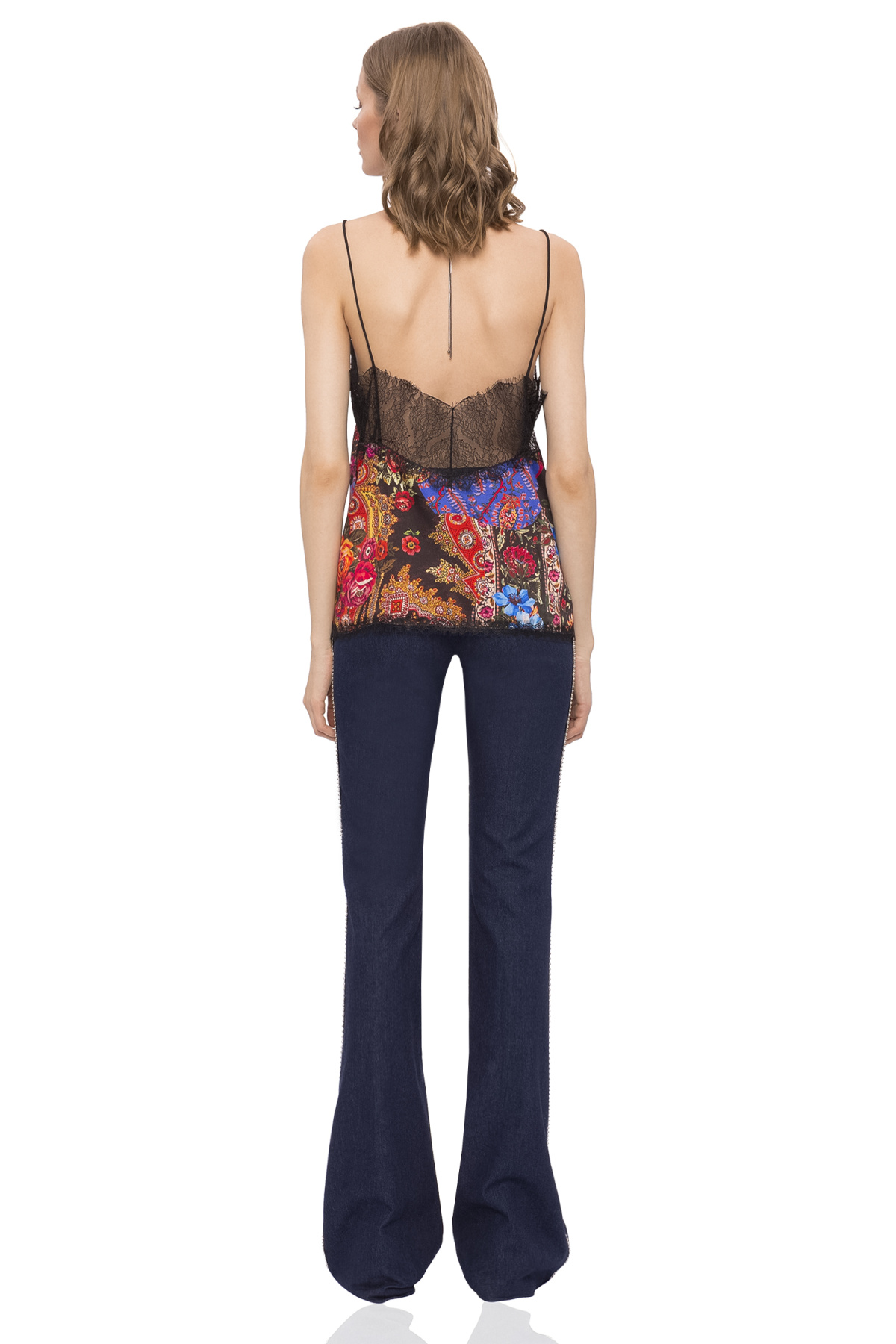 Product description Sleeveless satin top with lace