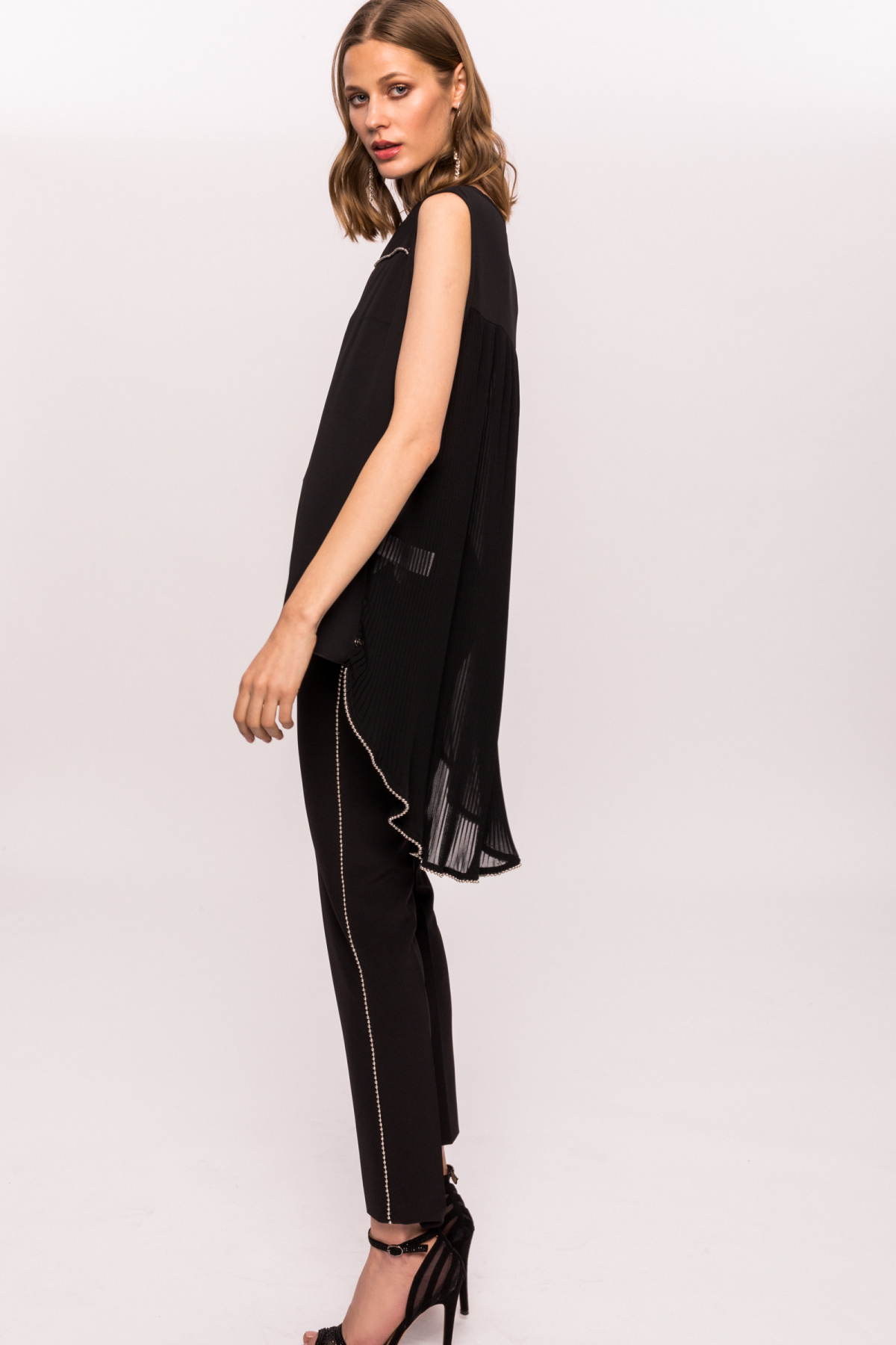 Product description Slim pants with metallic side detail
