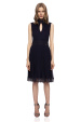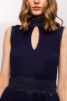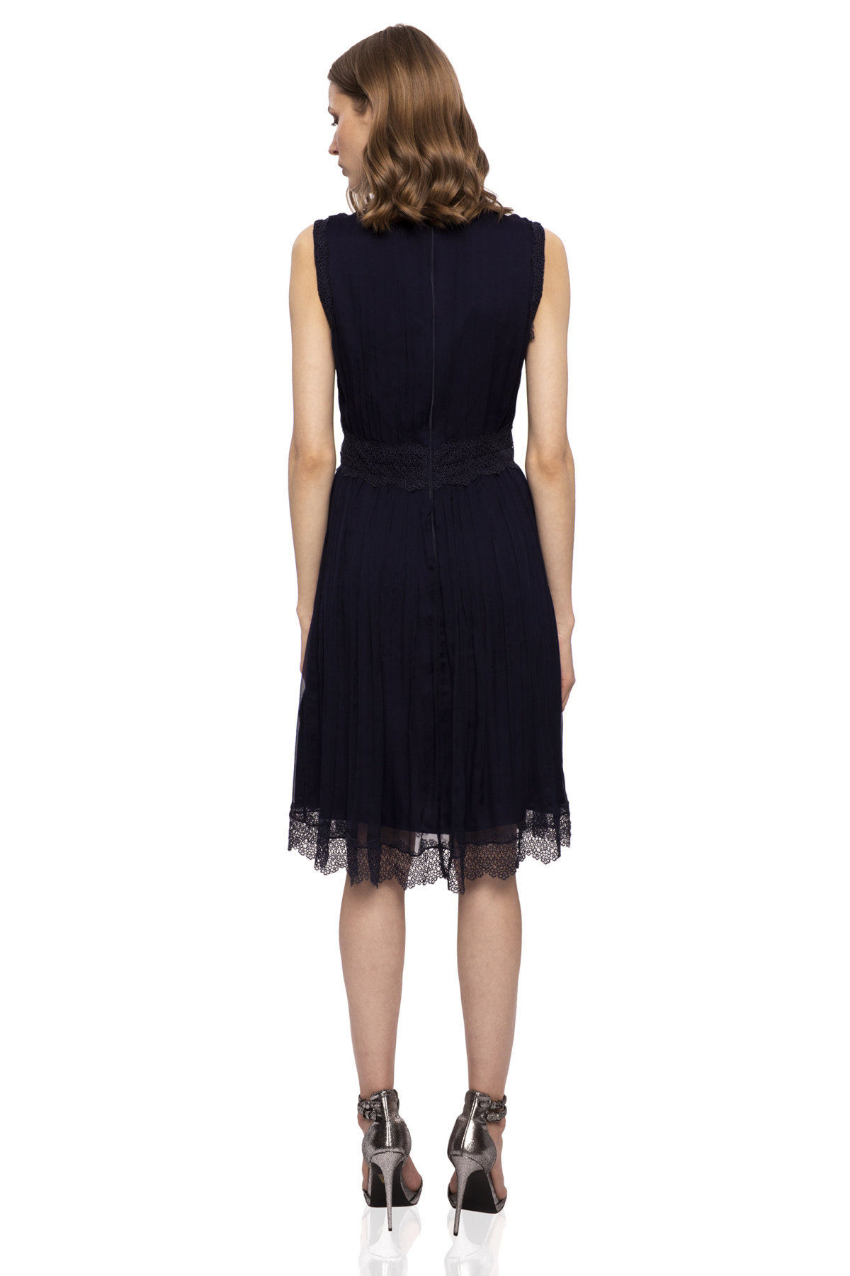 Product description Midi dress with pleated skirt. Lace waistband, high lace collar and lace applied on shoulders.