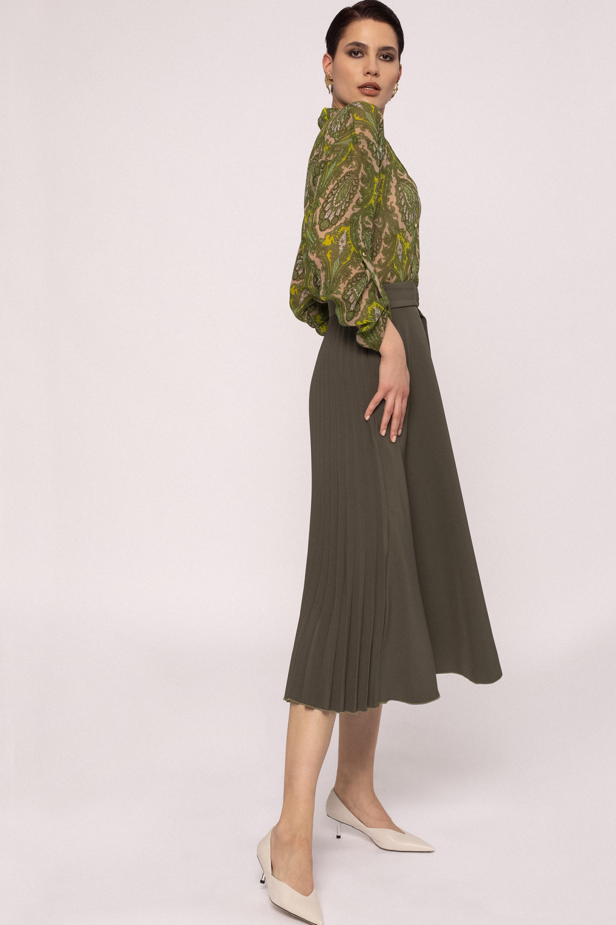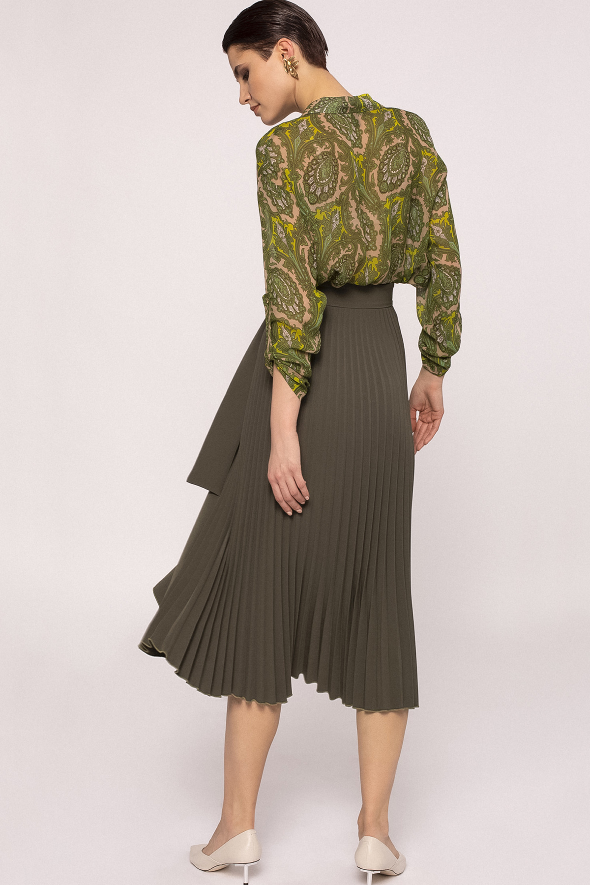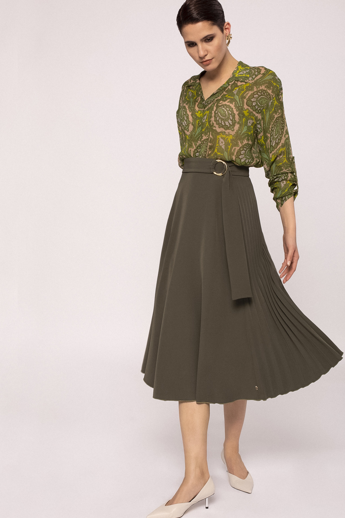 Waist detail pleated skirt