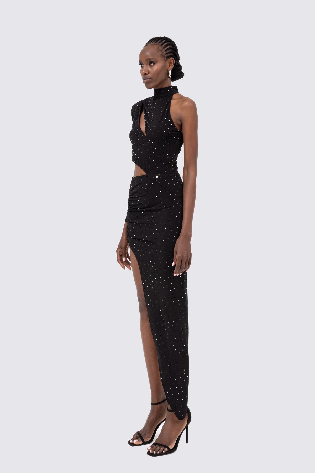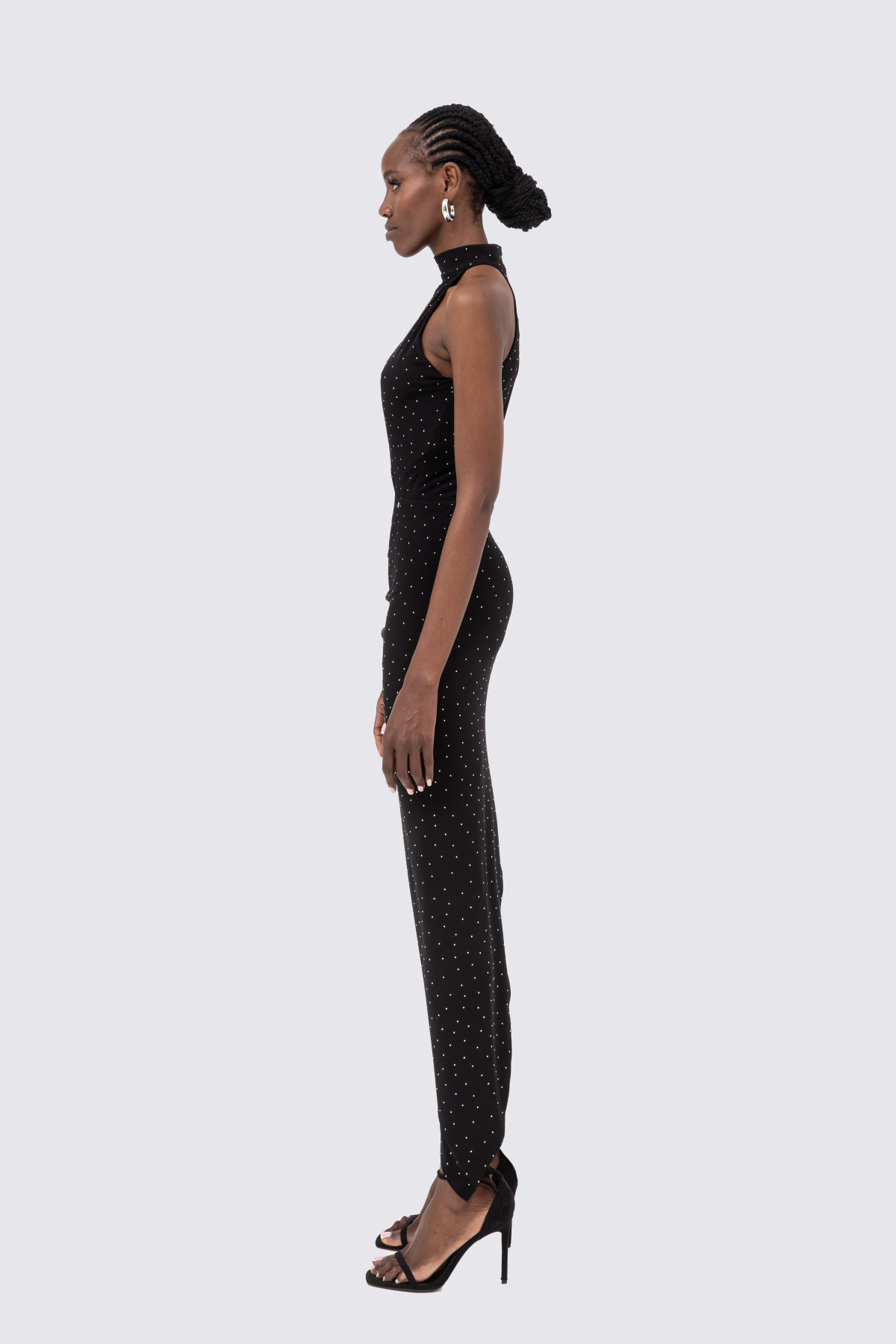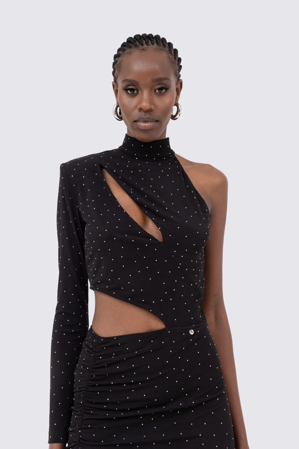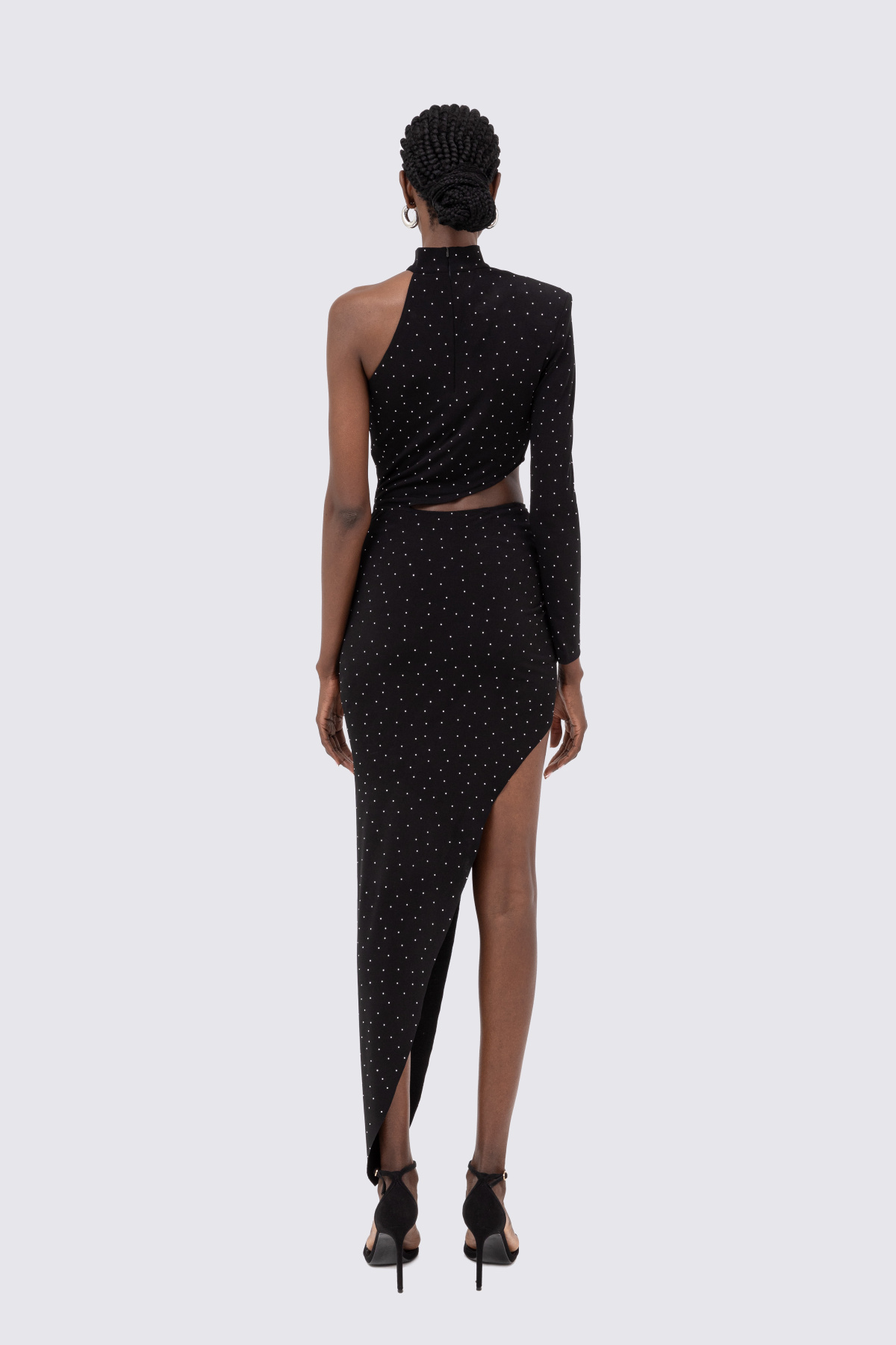 Crystal-embellished asymmetric midi dress