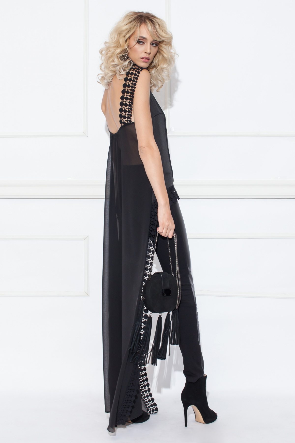 Modelul poarta masura 36, dimensiuni model: 180 cm inaltime, 89 cm bust, 60 cm talie, 89cm sold