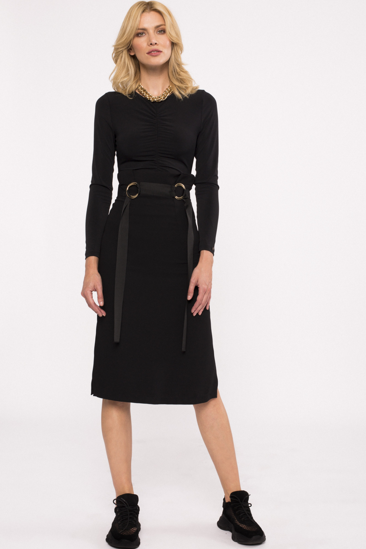 Modelul poarta masura 36, dimensiuni model: 180 cm inaltime, 89 cm bust, 60 cm talie, 89cm sold