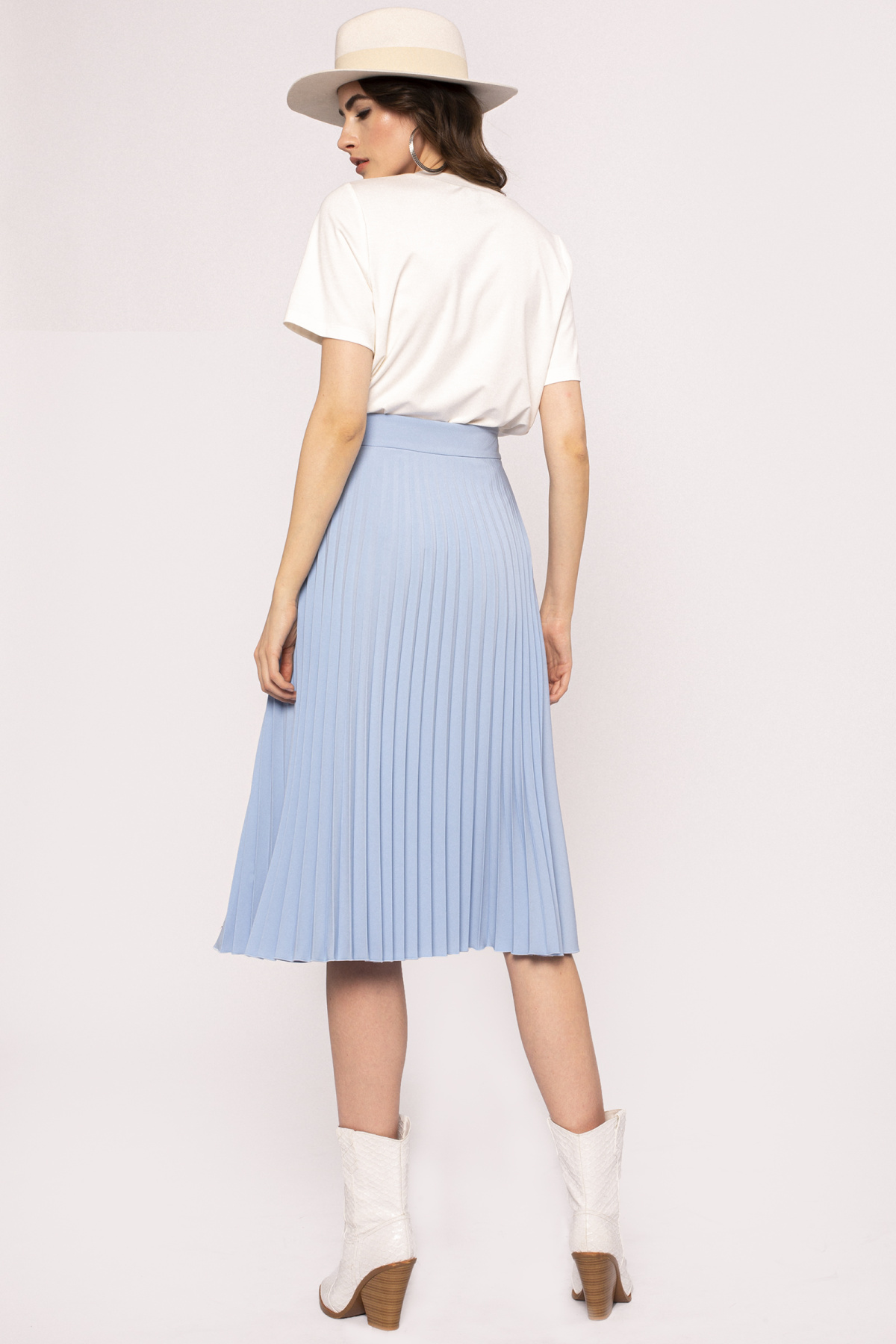 Fusta cu pliuri si detaliu in talie