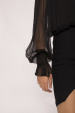 Modelul poarta masura 36, dimensiuni model: 174 cm inaltime, 86 cm bust, 60 cm talie, 88 cm sold