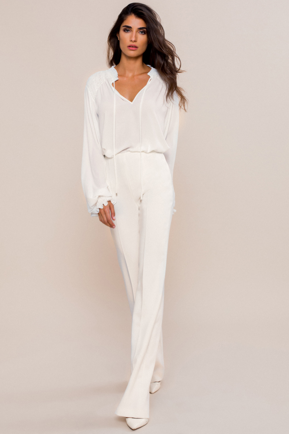 Modelul poarta masura 36, dimensiuni model: 176 cm inaltime, 87 cm bust, 60 cm talie, 89cm sold