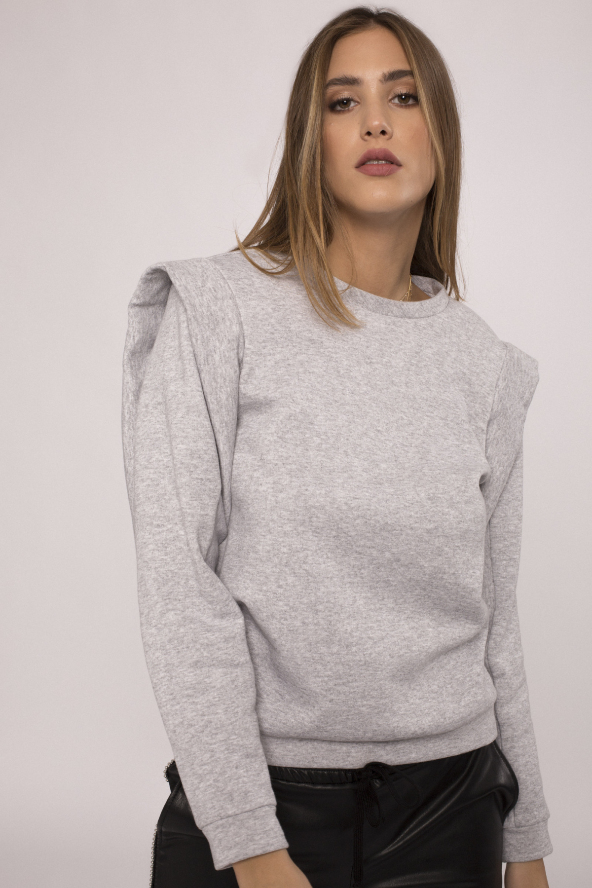 Top din bumbac cu umeri proeminenti