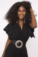 Modelul poarta masura 36, dimensiuni model: 186 cm inaltime, 90 cm bust, 64 cm talie, 80cm sold