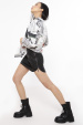Modelul poarta masura 36, dimensiuni model: 180cm inaltime, 88 cm bust, 60 cm talie, 92 cm sold