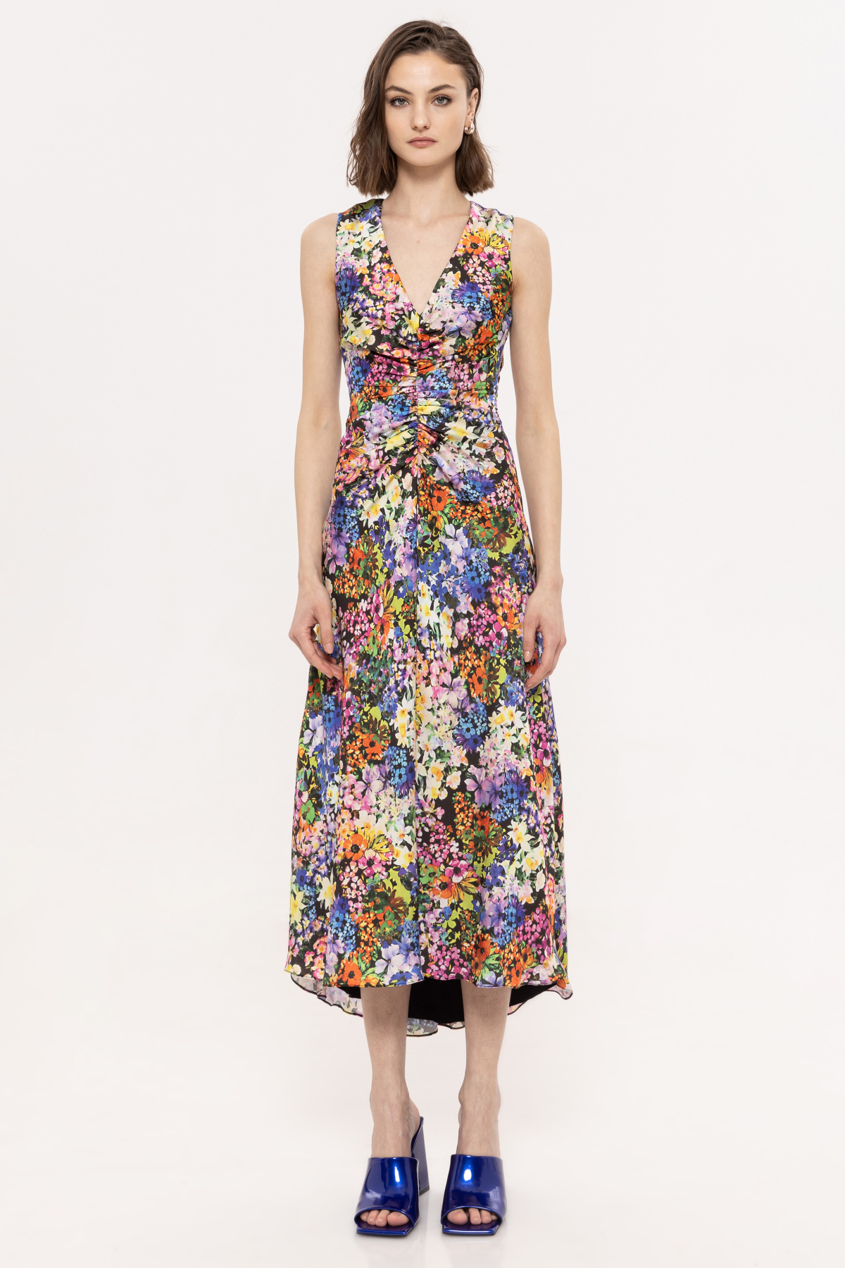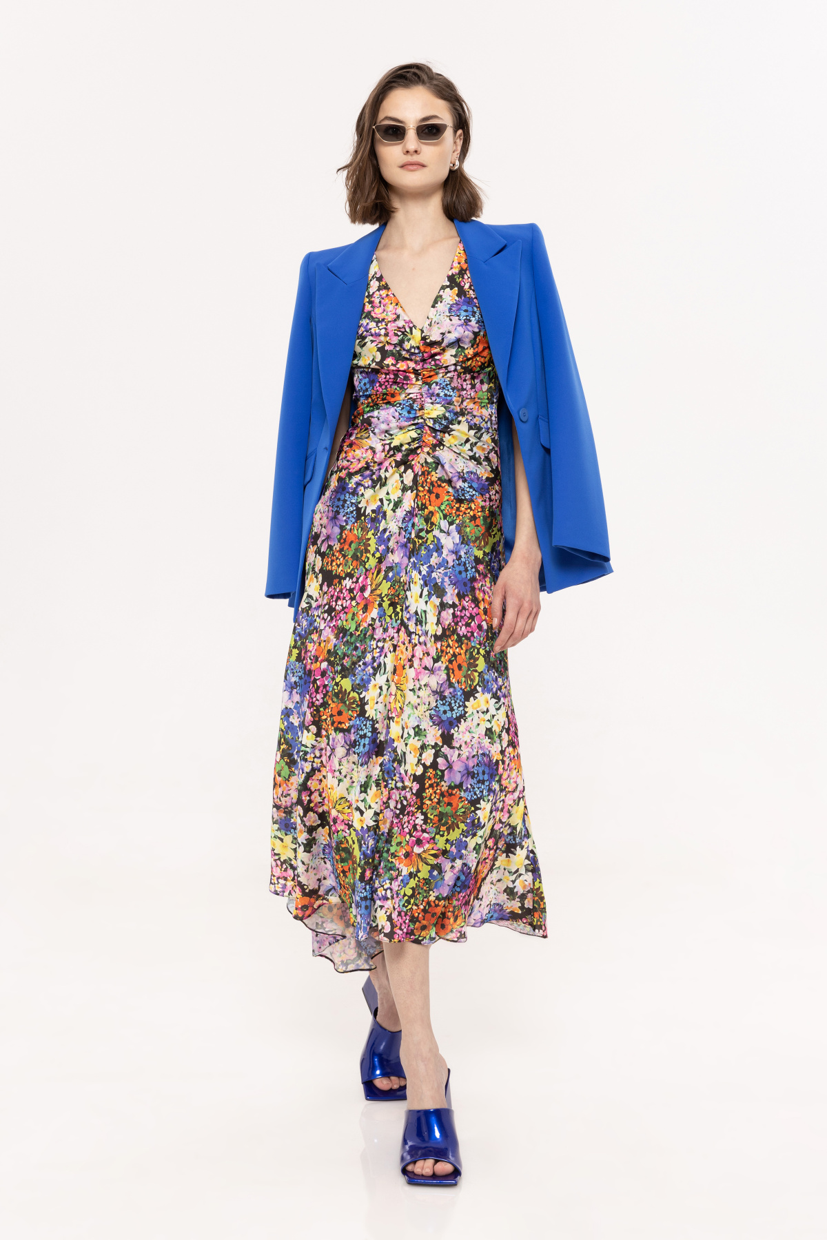 Modelul poarta masura 36, dimensiuni model: 178 cm inaltime, 82 cm bust, 59 cm talie, 89 cm sold