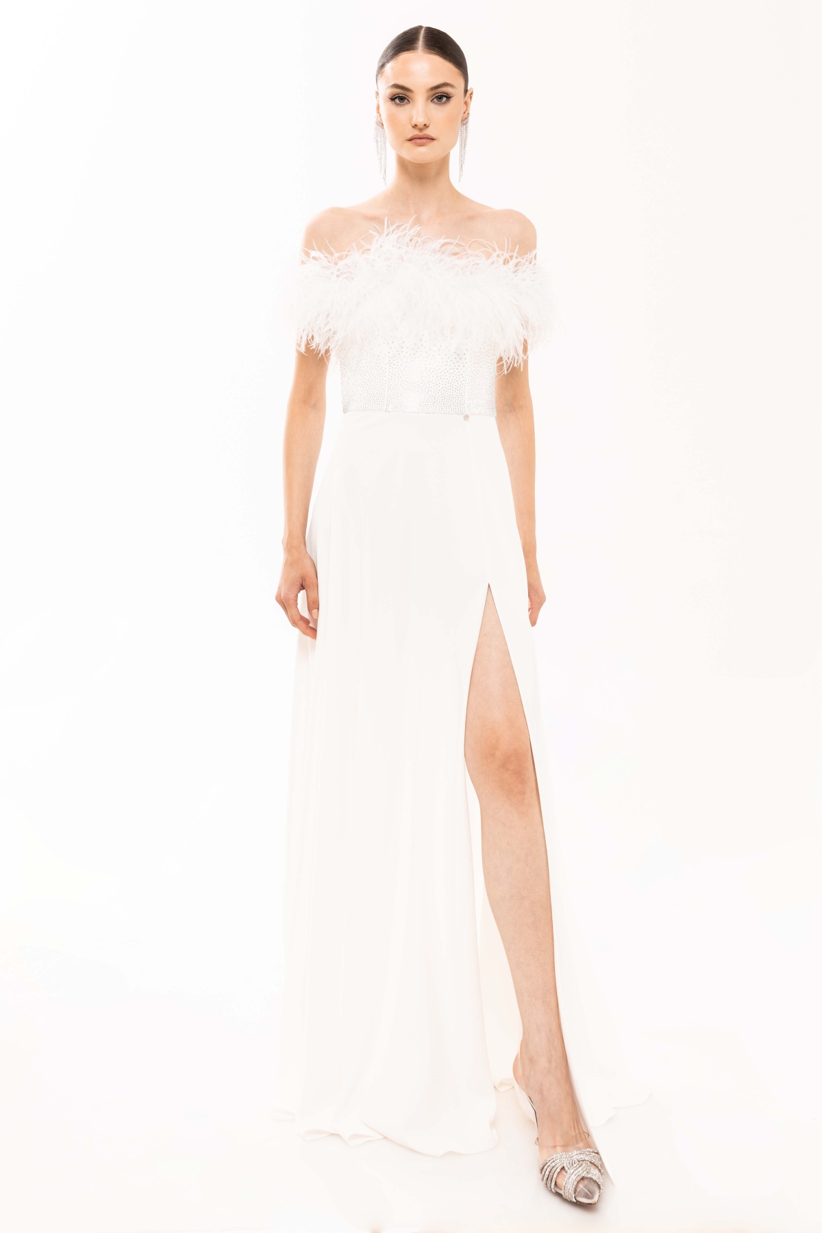 Rochie cu pene si cristale