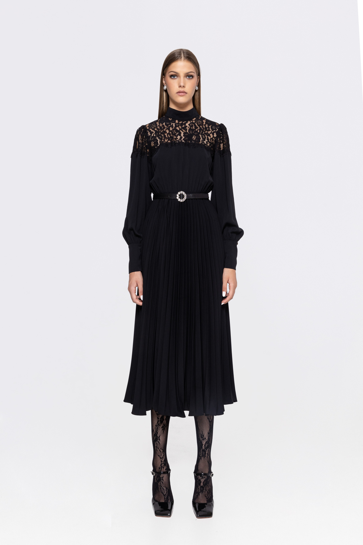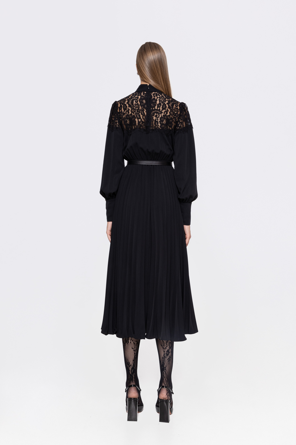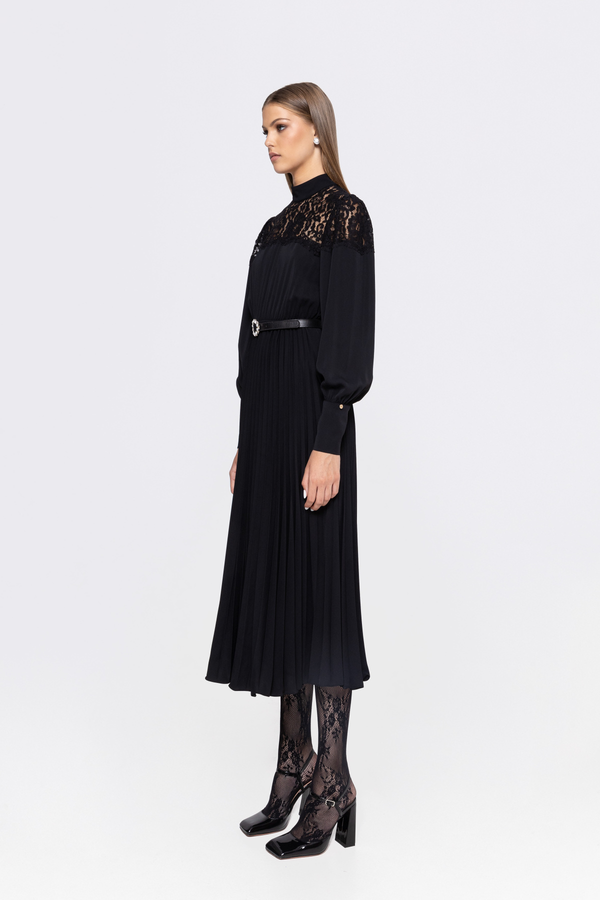 Rochie plisata cu insertie din dantela