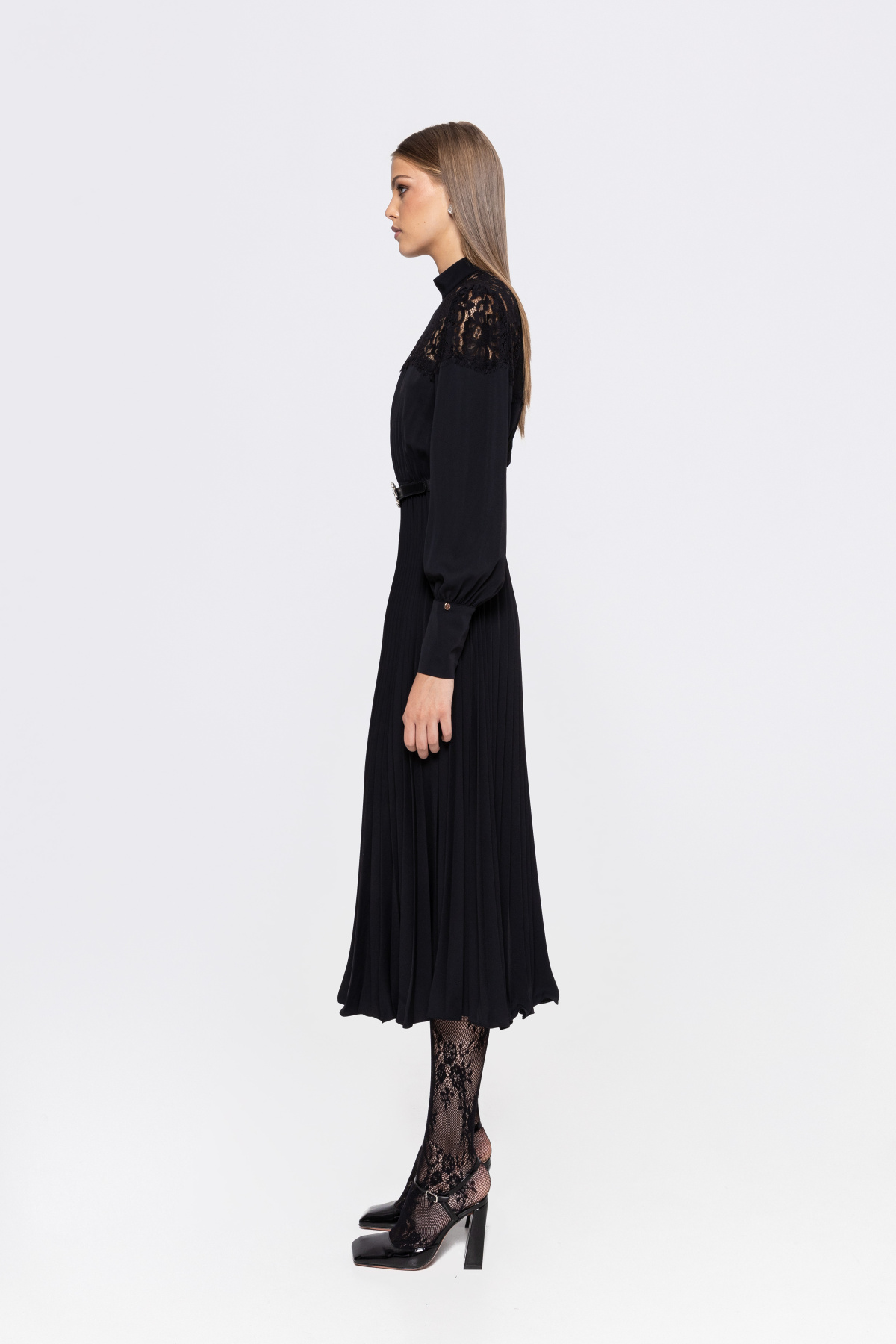 Detalii produs Rochie plisata cu insertie din dantela