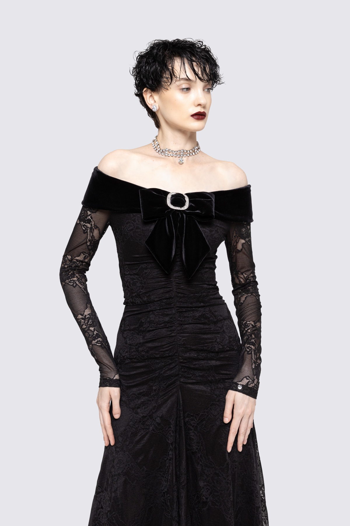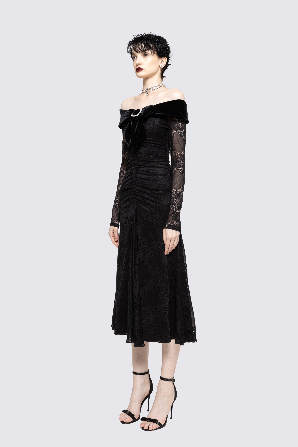 Rochie din dantela cu funda de catifea