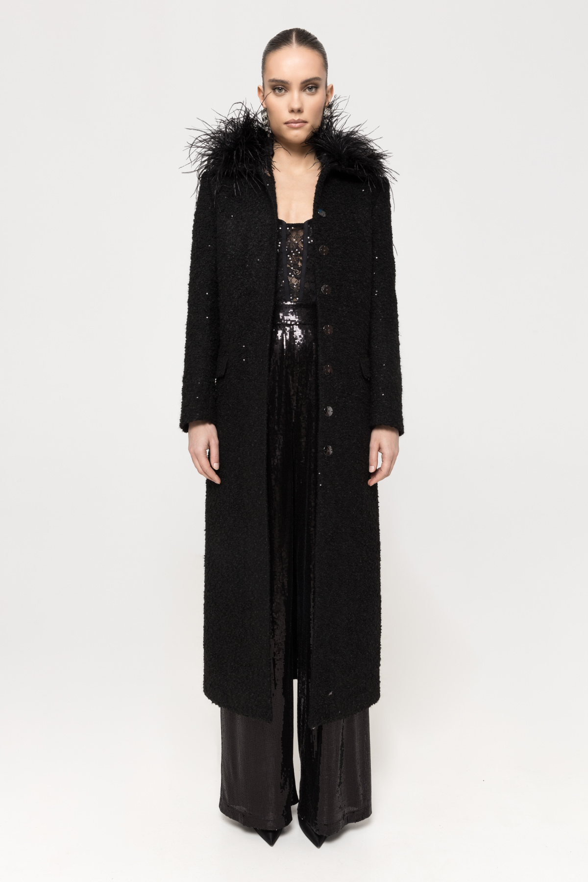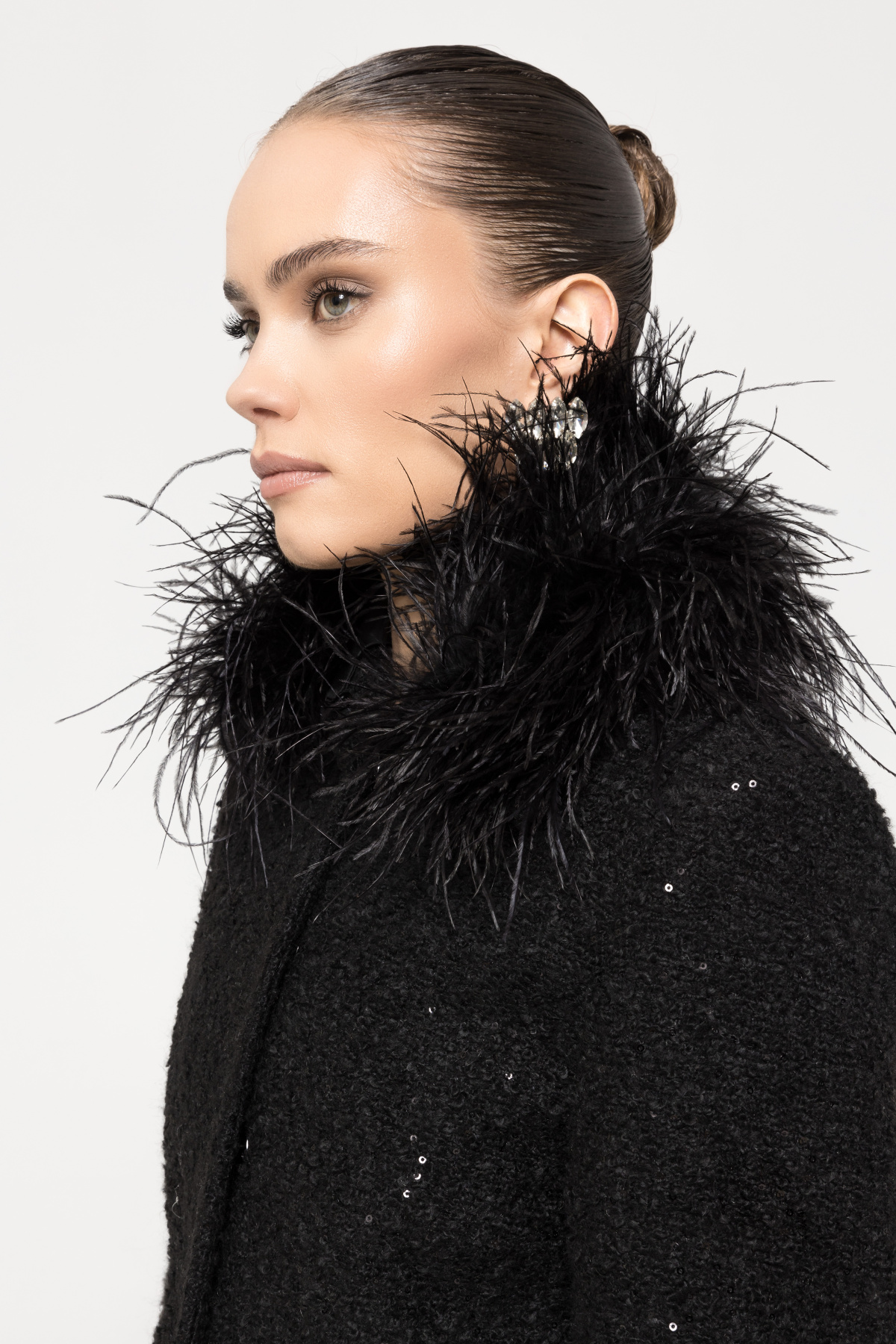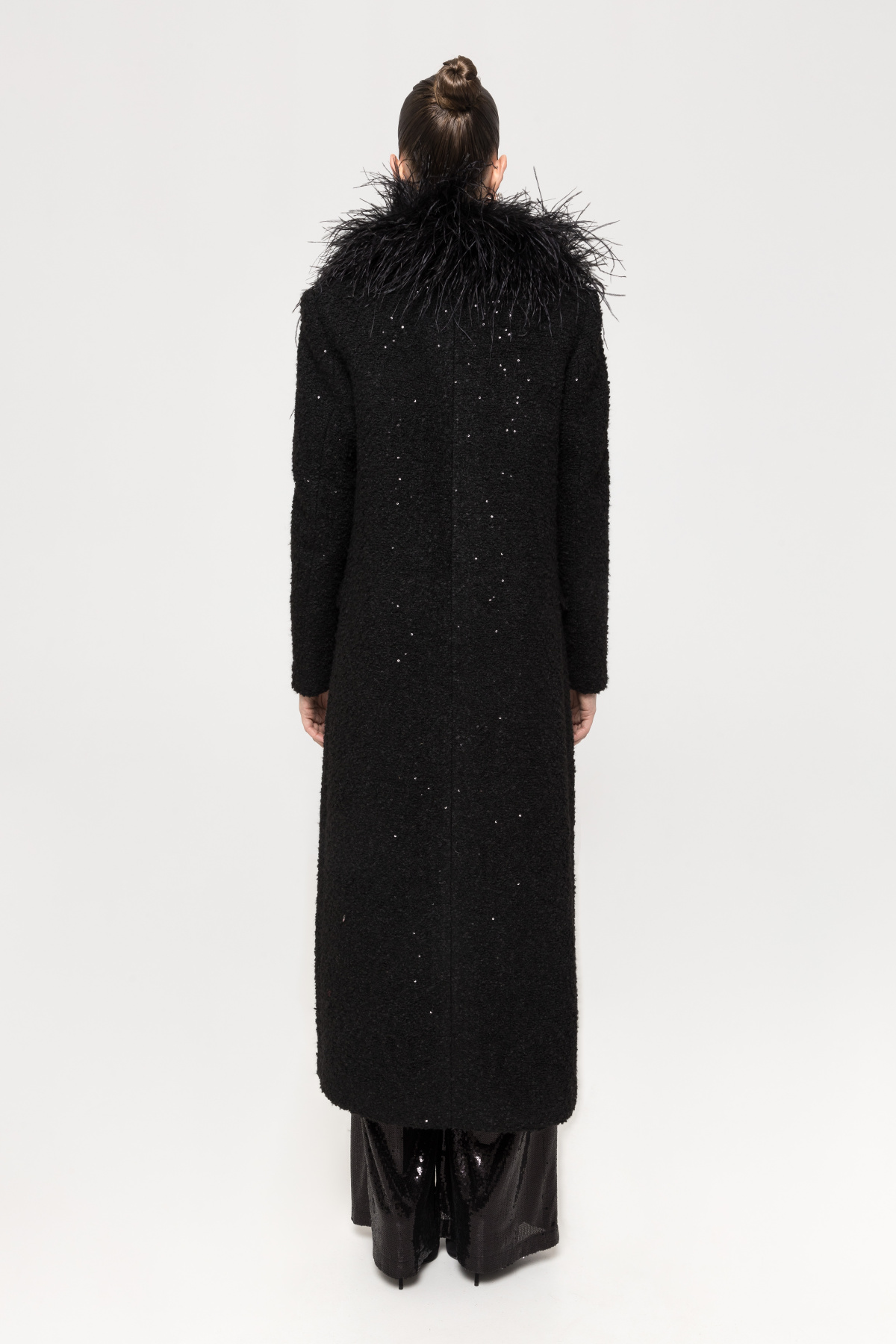 Detalii produs Palton din boucle cu guler din pene de strut
