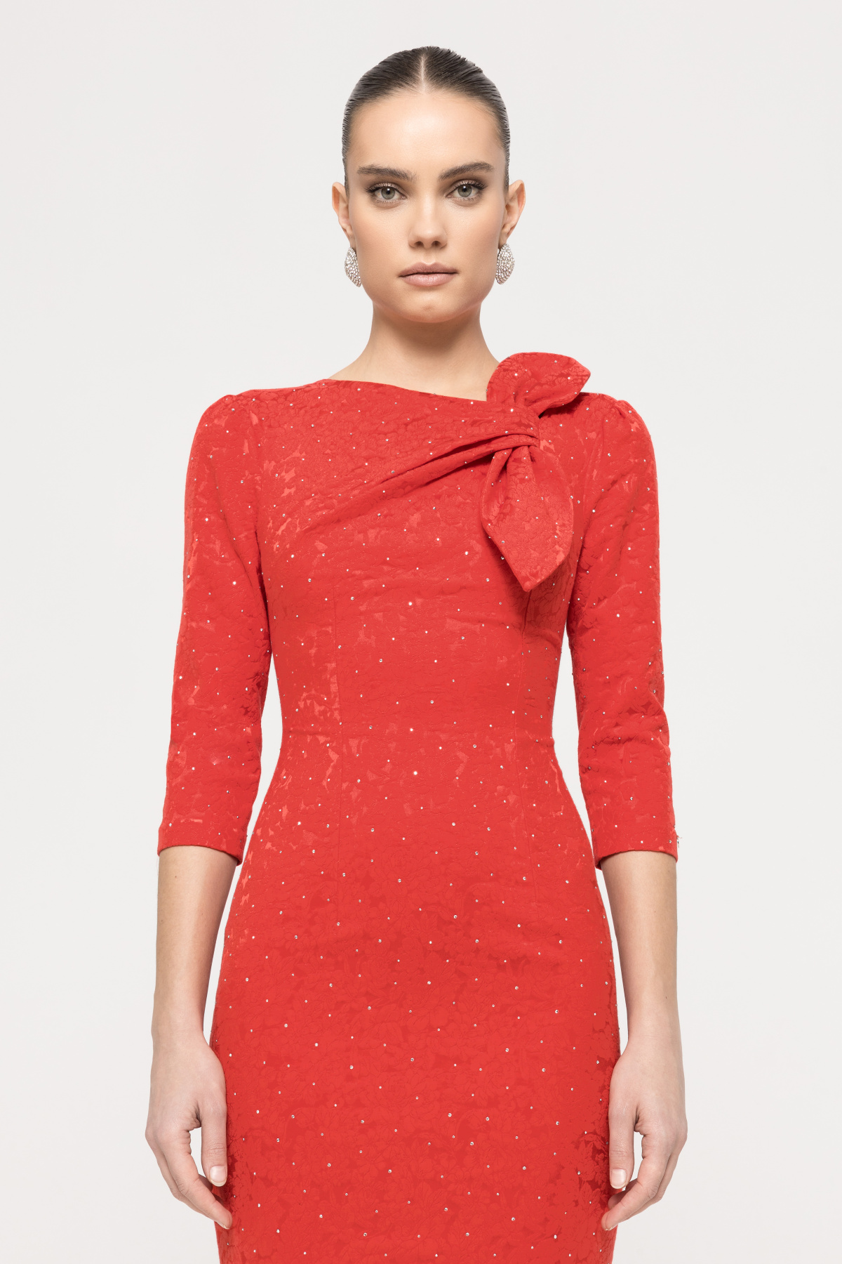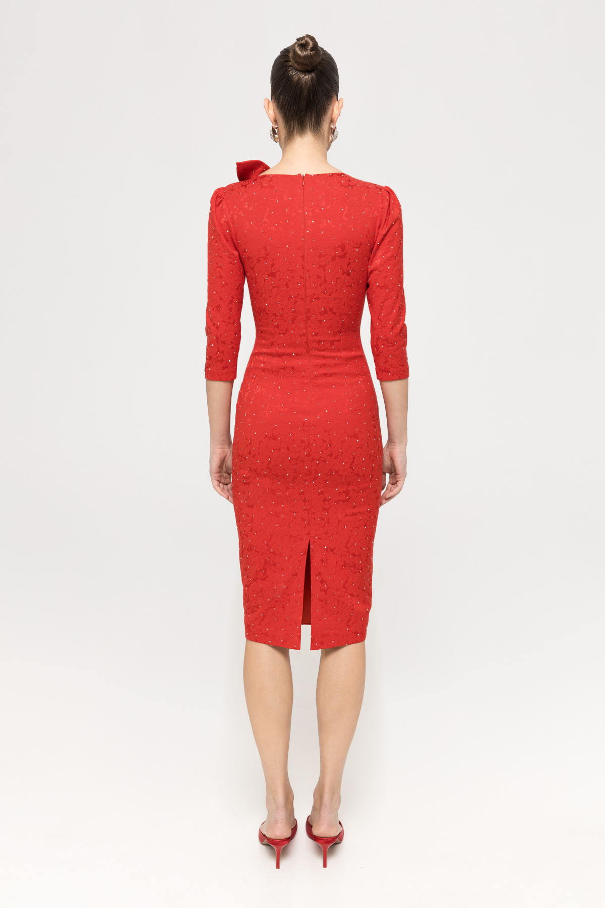 Detalii produs Rochie din brocart cu strasuri