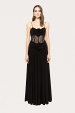 Detalii produs Rochie cu insertie din dantela si flori aplicate