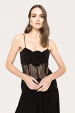 Modelul poarta masura 36, dimensiuni model: 179 cm inaltime, 83 cm bust, 61 cm talie, 90 cm sold