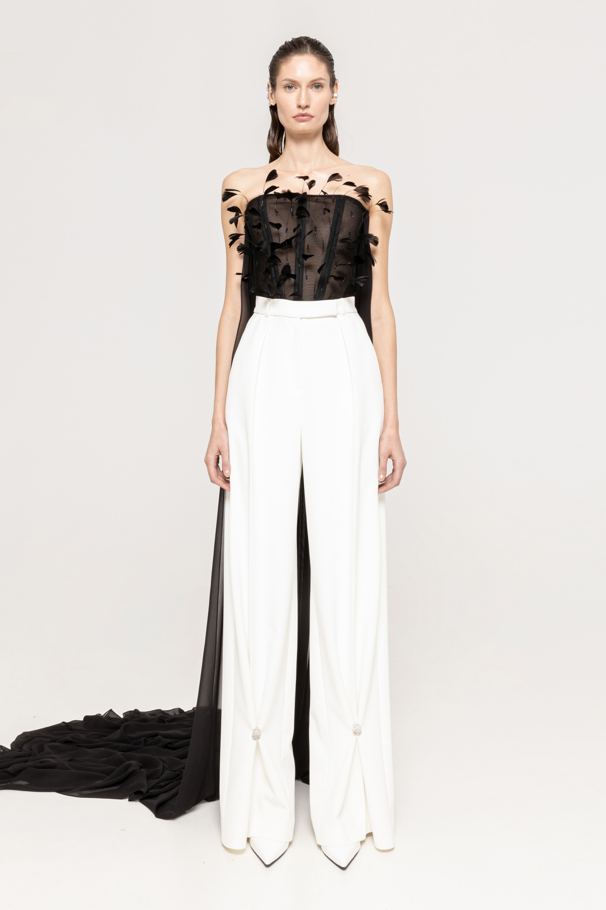 Detalii produs Pantaloni cu talie inalta si detalii de cristale