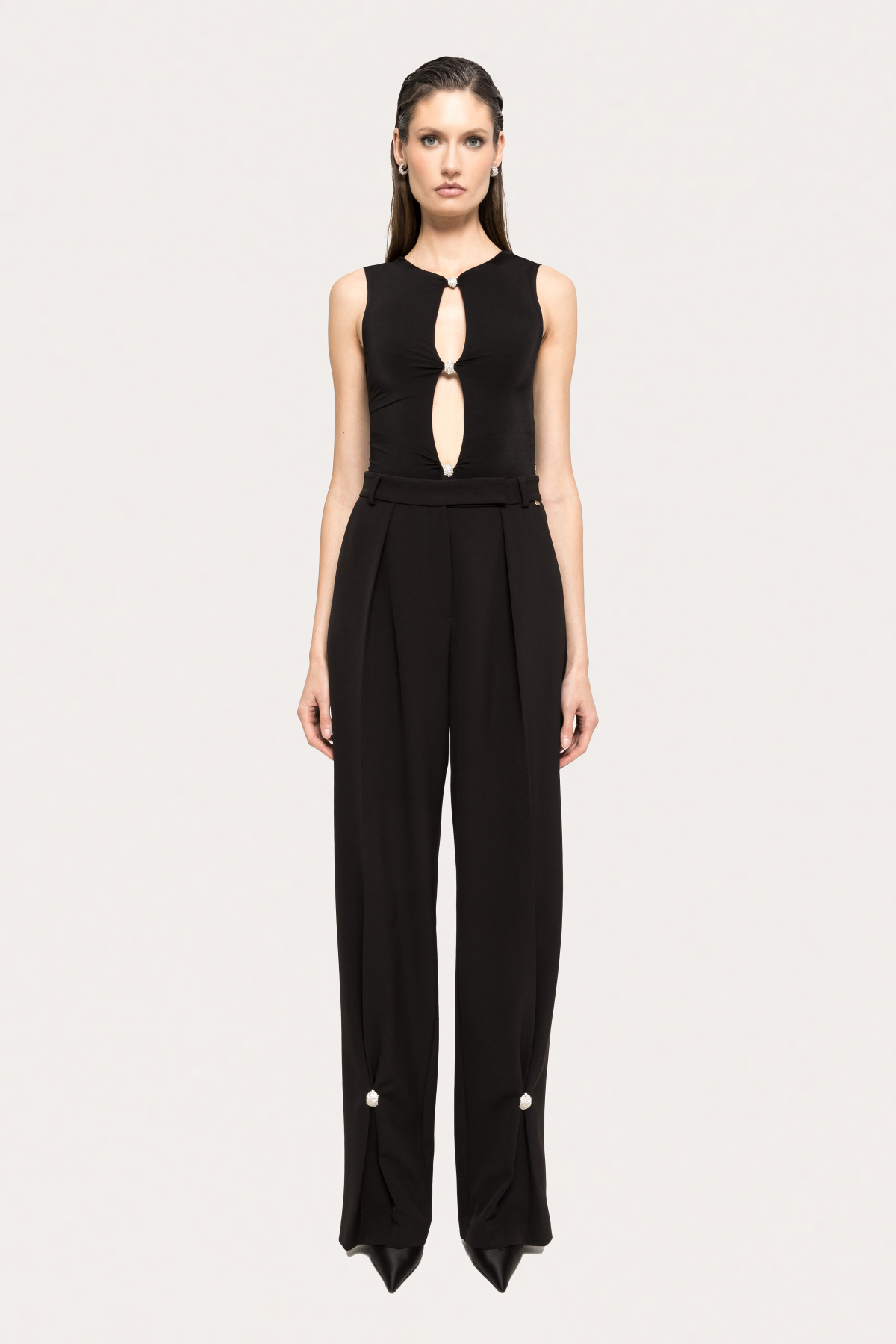 Pantaloni cu talie inalta si detalii de cristale