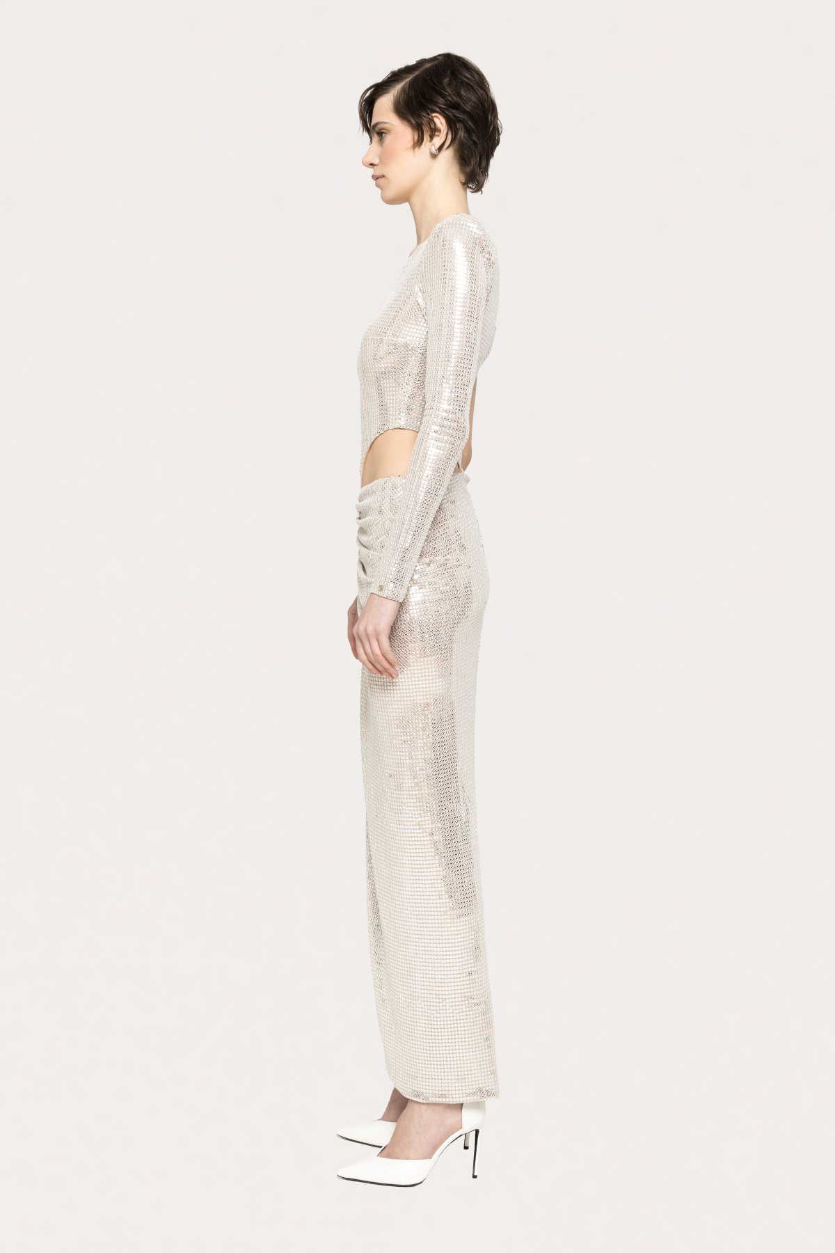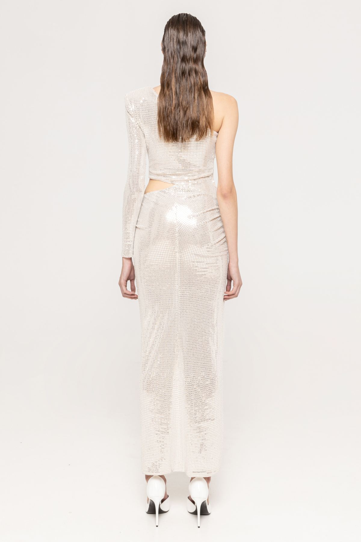Modelul poarta masura 36, dimensiuni model: 181 cm inaltime, 82 cm bust, 61 cm talie, 90 cm sold