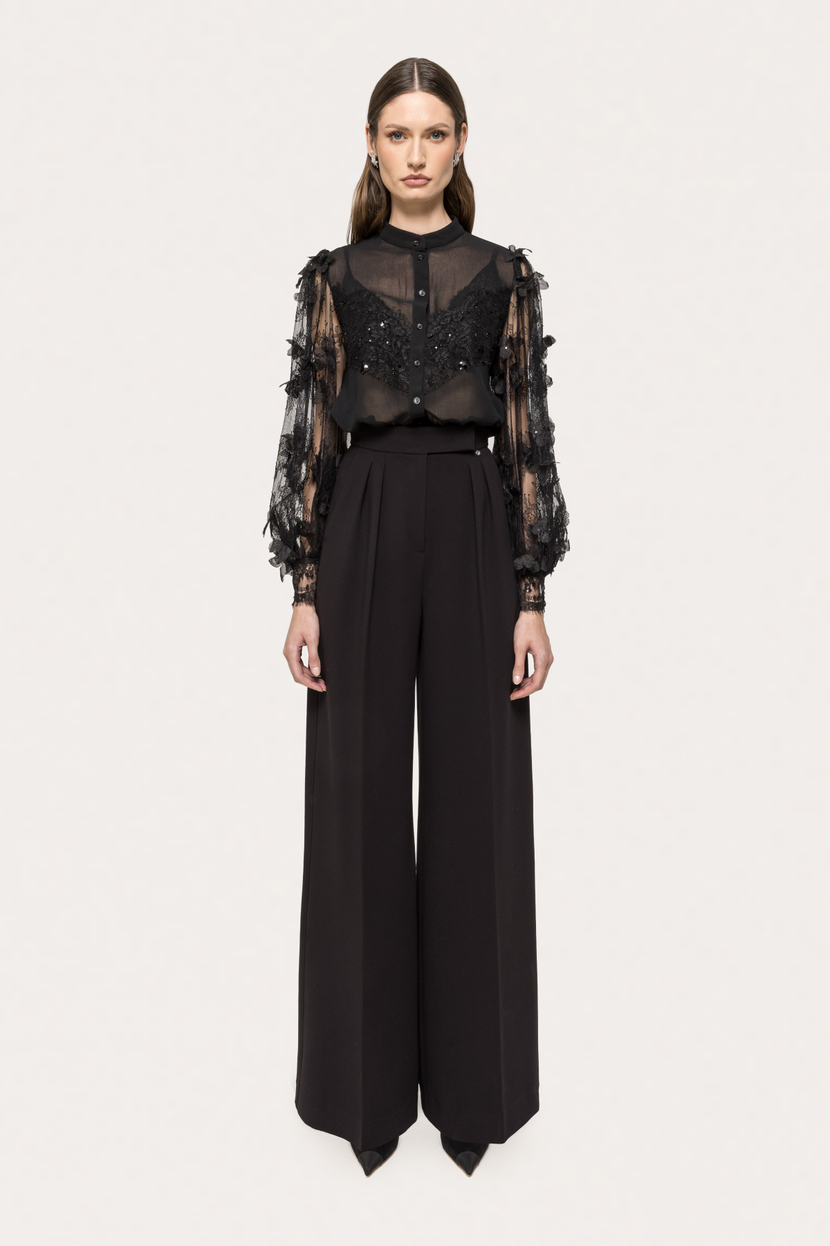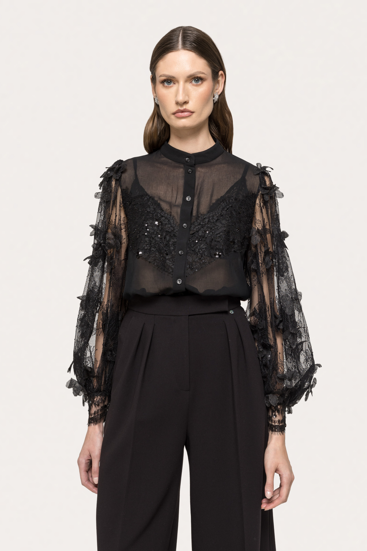 Camasa din dantela cu flori 3D