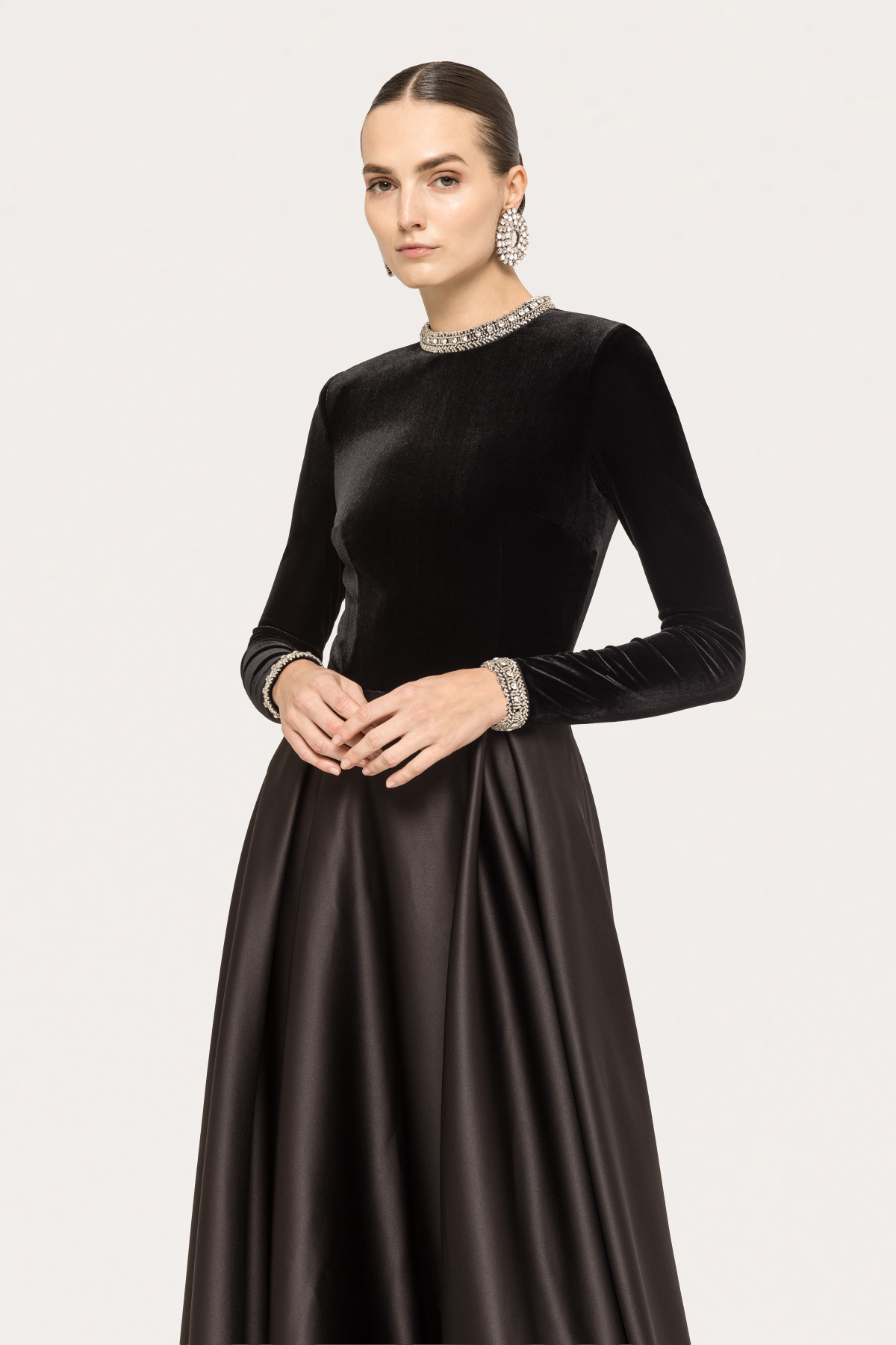 Modelul poarta masura 36, dimensiuni model: 179 cm inaltime, 84 cm bust, 59 cm talie, 88 cm sold