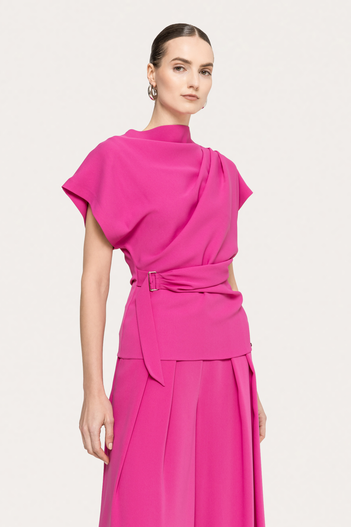 Modelul poarta masura 36, dimensiuni model: 179 cm inaltime, 84 cm bust, 59 cm talie, 88 cm sold