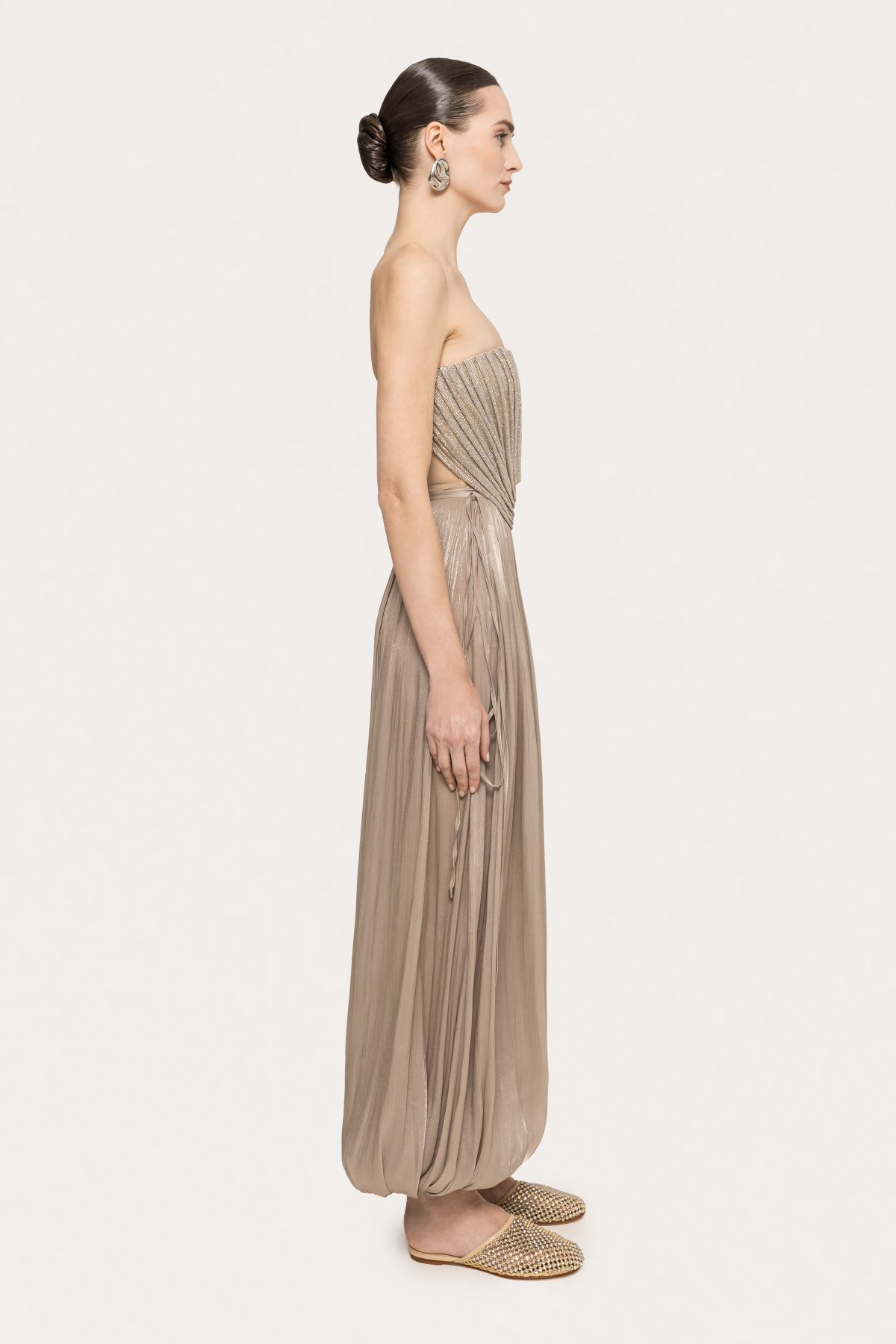 Modelul poarta masura 36, dimensiuni model: 179 cm inaltime, 84 cm bust, 59 cm talie, 88 cm sold