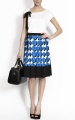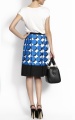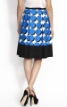 Fusta cu pliuri, realizata din print cu buline, lungime medie, talia este evidentiata cu garnitura de culoare neagra.