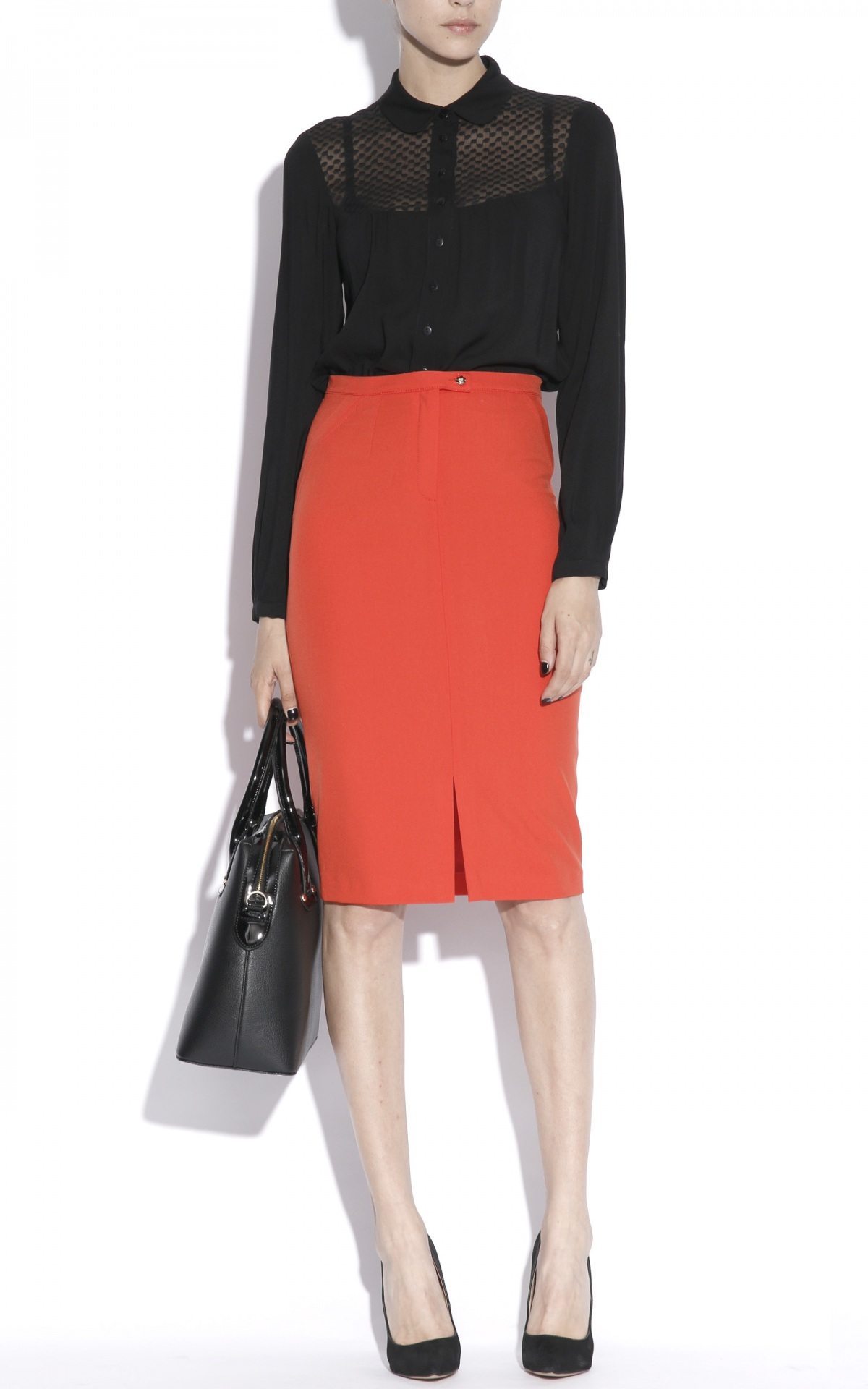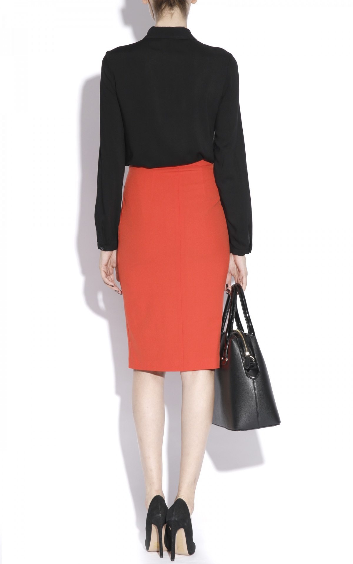 Fusta conica din stofa, cu talie inalta si slit pe mijlocul fetei